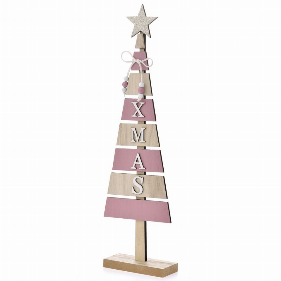 Χριστουγεννιάτικο Διακοσμητικό Δέντρο Ροζ με "XMAS"
